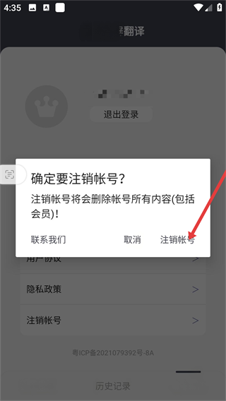 3、在确认弹窗中,点击“注销帐号”按钮。