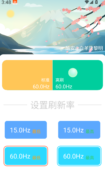 《小米刷新率》是一款屏幕刷新率调整软件,主要用于查看和切换手机显示屏的刷新频率。软件可以让不同场景下的画面表现更加顺畅或节能,通过选择高刷新率或标准模式,实现性能和电量的平衡。界面简洁直观,可实时显示当前刷新率并提供多档选择,适合在游戏、视频播放或日常操作中切换。软件还提供自动调节功能,能够根据应用场景调整刷新频率,提升视觉体验与操作流畅度。操作简单,调整快速,适合日常使用。