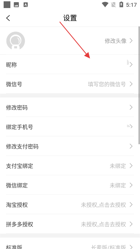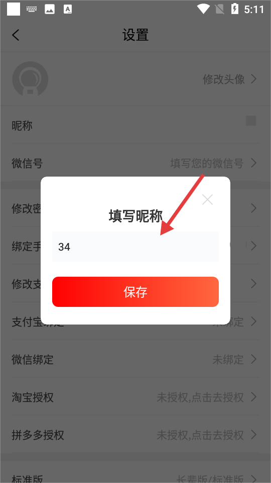 3、在设置页面点击【昵称】,弹出填写昵称的弹窗。