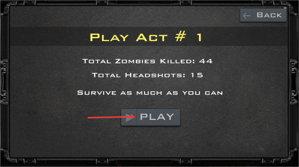 2、点击【PLAY】进入游戏,目标是尽可能生存,积累僵尸击杀数与爆头数。