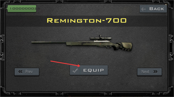 1、在武器界面点击【EQUIP】,装备枪械,完成战斗前的武器配置。