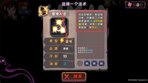3、选【雷电冲击】法术-属【雷电】类型,攻击时放连锁闪电,对最多三只怪物造成伤害并概率附加雷击。