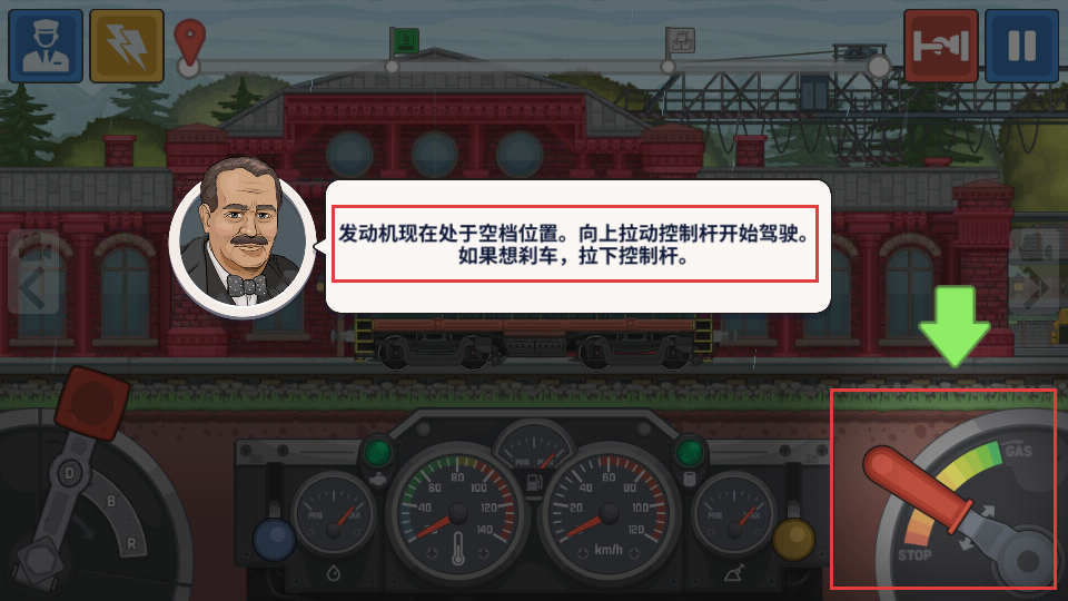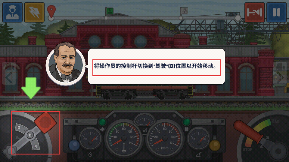2、进入驾驶界面后,将控制杆切换到【D】档位位置,完成启动前的档位设置以让列车开始移动。