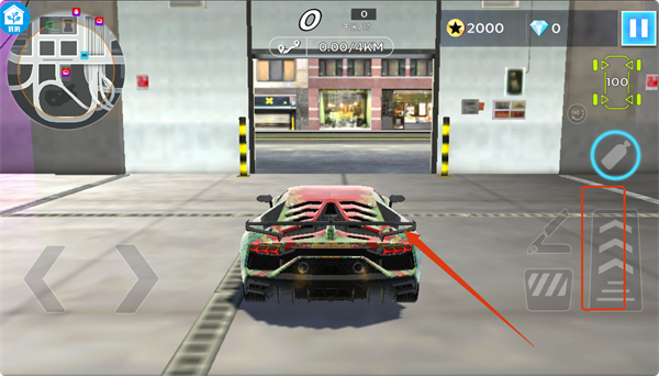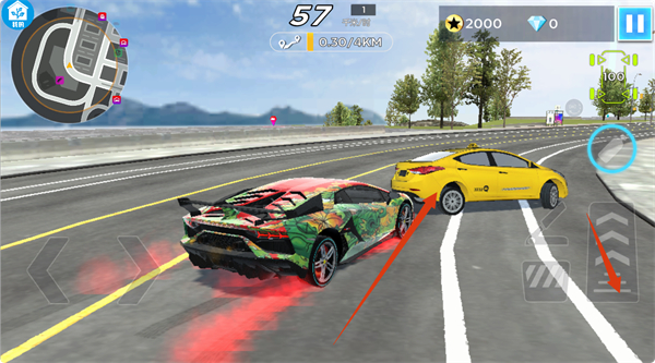 1、游戏开始时,熟悉界面元素,点击油门按钮,开启行驶任务。