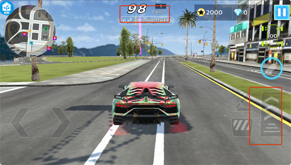 1、操作控制简单直观响应迅速,左侧虚拟方向盘控制移动方向,右侧按键管理油门刹车和氮气加速功能。
