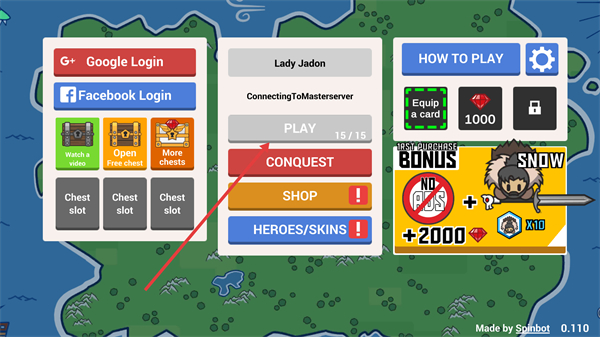 1、点击“CONQUEST”进入征服模式,该模式核心是扩张领地,需先通过登录功能绑定账号以保存进度。