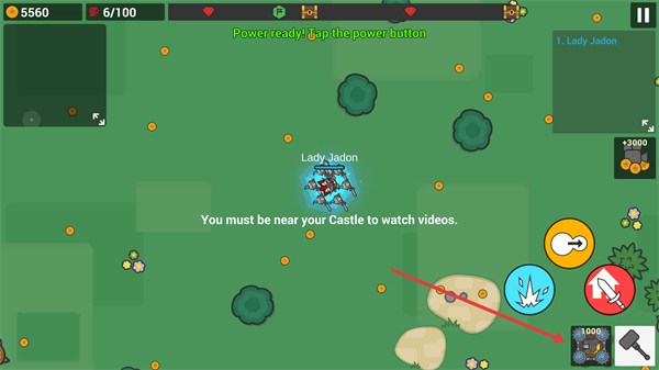 2、根据提示说明观看广告获取奖励需靠近城堡,需先移动角色至城堡区域。