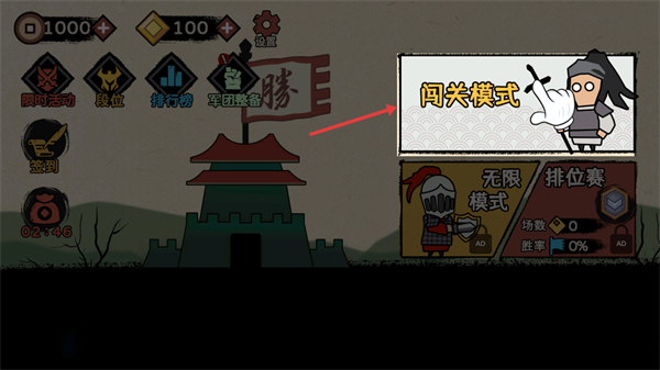 1、选择【闯关模式】开启挑战,可通过【限时活动】获取资源,提升军团实力以便后续战斗。