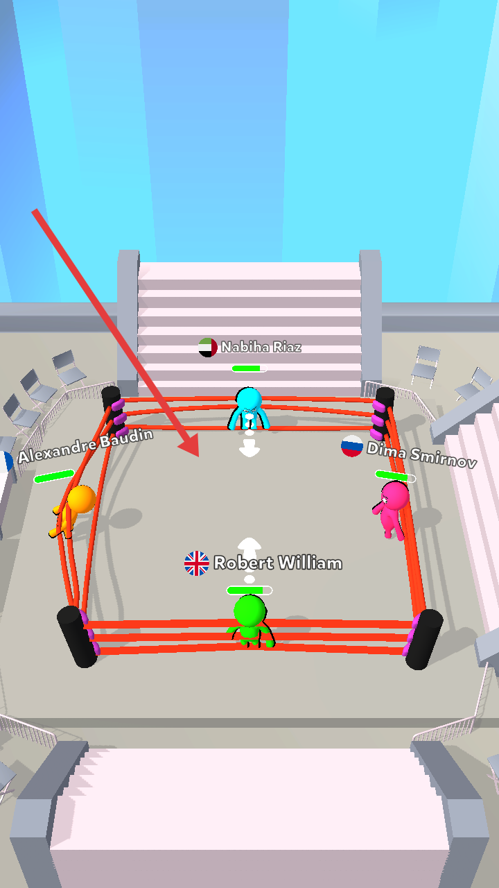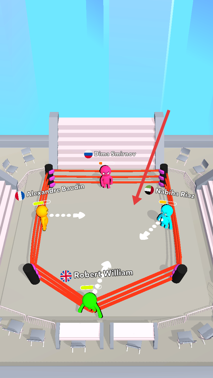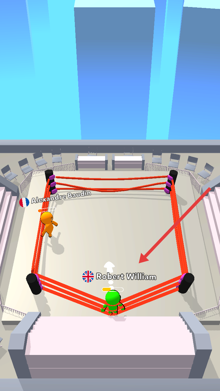 2、根据箭头提示调整角色位置,利用擂台空间与对手周旋,消耗对手血量。