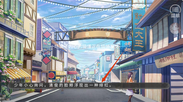 2、在夜市场景中,关注文本“少年小心询问,清俊的脸颊浮现出一种绯红”,体验少年的懵懂情绪,推动剧情发展。