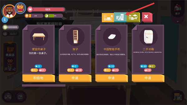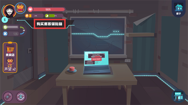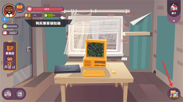 2、点击右侧的商店图标,打开物品购买界面,准备选购任务所需的黑客保险柜。