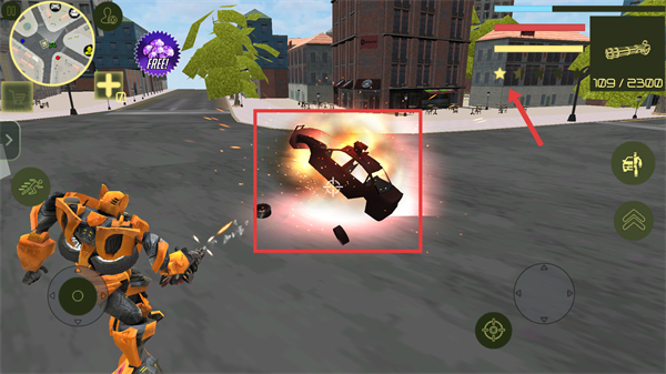 2、消灭车辆后,关注红色箭头指向的星级提升,积累星级以解锁更多内容。