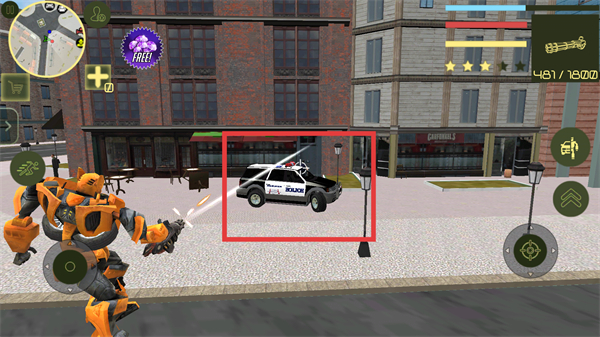 3、遇到红色框内的警车时,利用武器对其发起攻击,完成战斗任务。