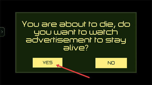 4、当面临死亡时,点击红色箭头指向的【YES】按钮直接复活。