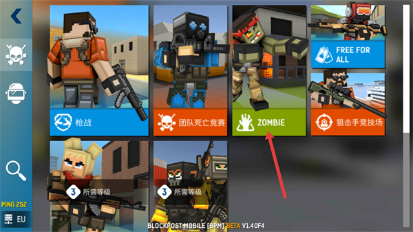 1、在游戏模式选择界面,点击“ZOMBIE”模式,进入僵尸主题的射击玩法。