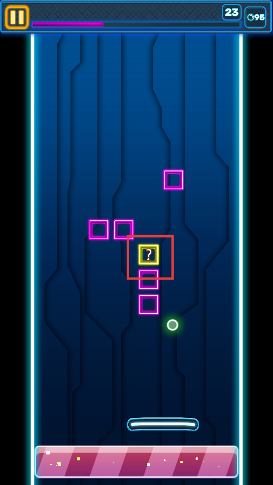 3、优先撞击带有【?】的黄色方块,触发随机奖励,助力快速积累分数和通关。