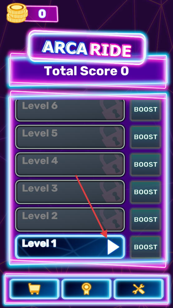 1、进入游戏后选择【Level-1】开始挑战,从第一关熟悉游戏机制,逐步提升操作技巧。