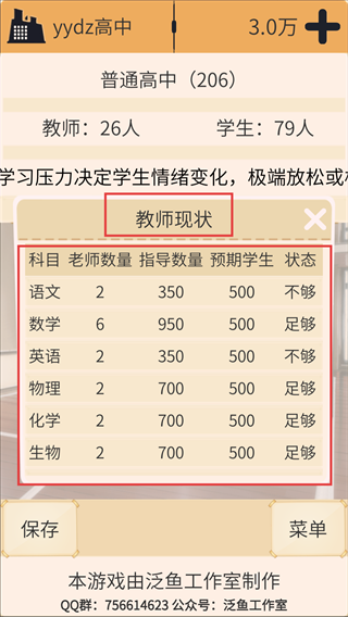 4、查看【教师现状】数据,平衡各科老师数量,确保指导数量足够,维持良好教学状态提升成绩。