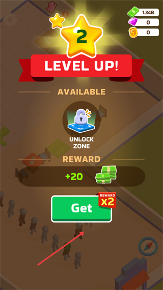 4、升级后出现界面,点击【Get】按钮领取奖励,可获得金币和解锁新区域的机会,助力店铺发展。