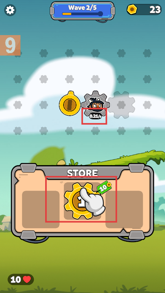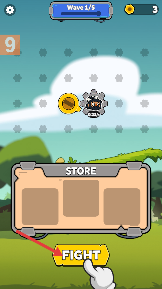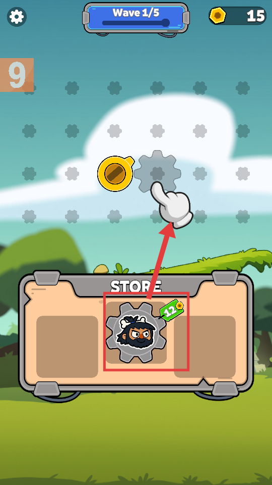 1、点击商店中齿轮状的角色图标进行放置,提升战力,为战斗做准备。