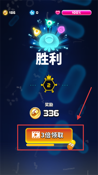 4、通关后点击【3倍领取】按钮,获取更多金币奖励,加速资源积累用于升级。