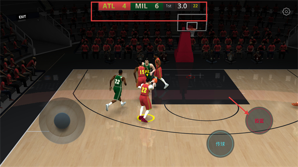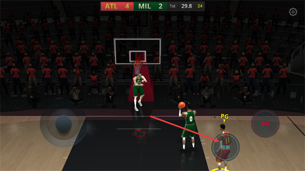 2、当前ATL以4-2领先MIL,对方【PG】球员持球时,点击“抢断”按钮尝试拦截。