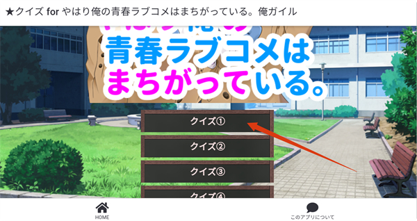 1、进入游戏后,选择【クイズ①】开始答题,准备挑战关于《我的青春恋爱物语果然有问题》的知识问答。