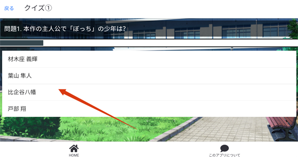 2、答题时,仔细阅读题目,如“本作の主人公で「ぼっち」の少年は?”,从选项中选择正确答案【比企谷八幡】。
