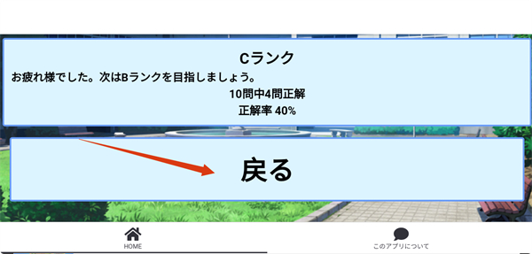 4、答题结束后,根据获得的等级和正解率,点击【戻る】返回主界面,可选择继续挑战其他或总结答题情况。