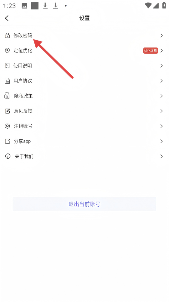 3、在设置页面,点击【修改密码】选项,可进入修改密码页面。