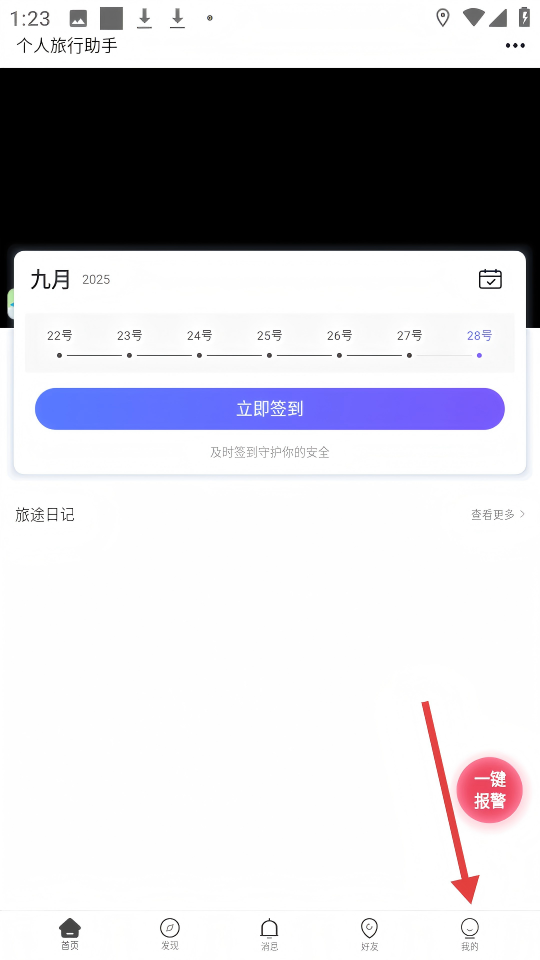 1、在个人旅行助手首页,点击右下角【我的】按钮,可进入我的页面。