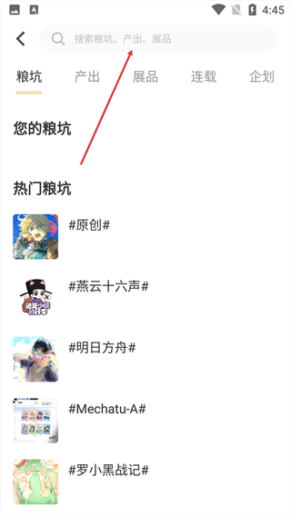2、在粮坑页面点击顶部的搜索栏,输入关键词以查找目标粮坑。