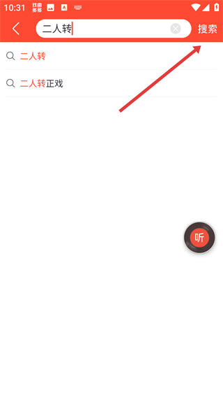 2、在【搜索栏】输入【二人转】,点击右侧【搜索】按钮,即可找到相关戏曲内容啦。