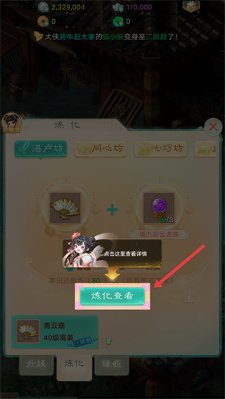 3、点击【炼化查看】,进入炼化流程,消耗材料进行装备炼化。