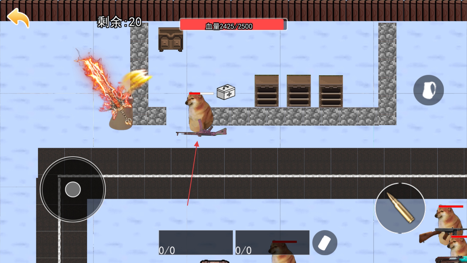 4、进入地图后搜寻物资武装自己,躲避攻击,开箱子捡武器装备,遇敌人射击击败继续前进。