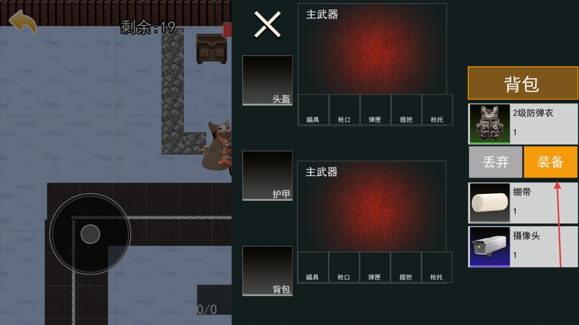 4、进入【背包】界面点击【装备】按钮穿戴防弹衣,调整武器配件增强作战实力应对后续挑战。