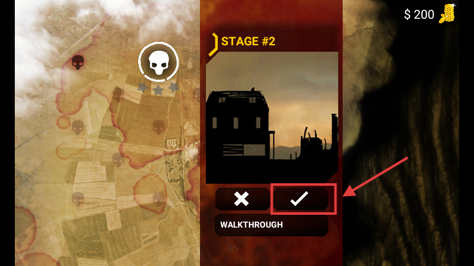 1、进入【STAGE-#2】关卡时,点击确认按钮开启任务,准备潜伏狙杀来袭僵尸,守护幸存者安全。