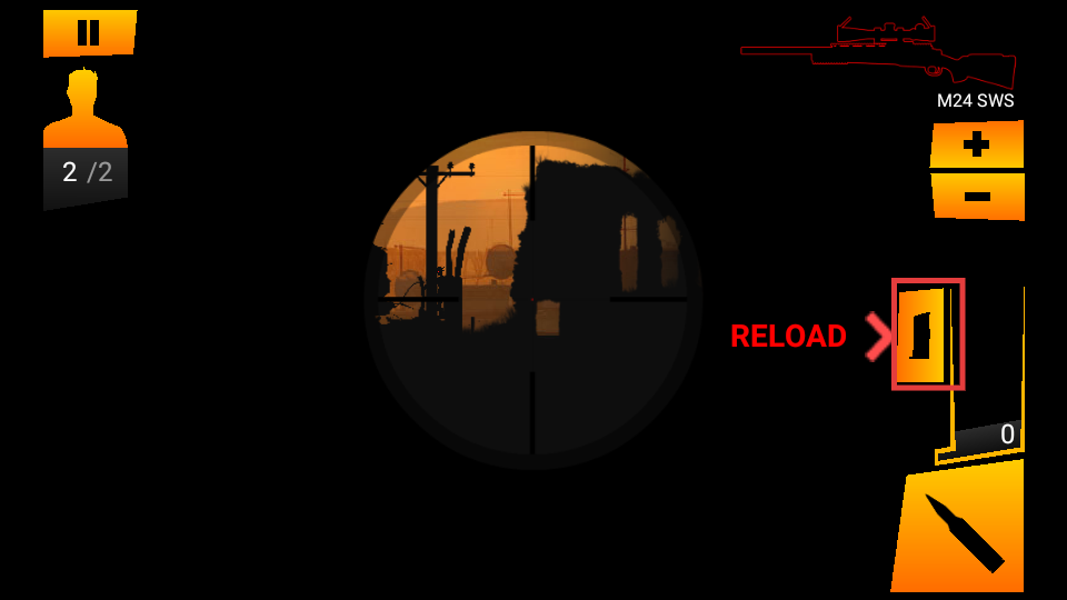 3、弹药耗尽时,点击【RELOAD】换弹按钮补充弹药,换弹期间留意僵尸动向,可暂避或预判其位置。