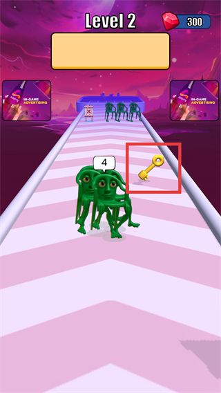 2、移动角色合并后等级升至【4】,同时拾取红框内的【钥匙】道具,解锁后续区域,推进关卡流程。
