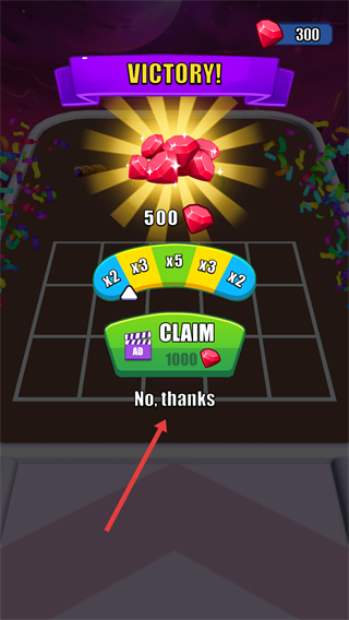 4、胜利后点击【No.thanks】领取奖励,进入下一关。