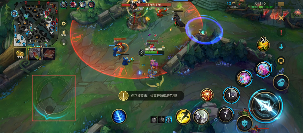 2、要是被敌方防御塔攻击,得赶紧离开【防御塔】的伤害范围,不然血量扛不住呢。