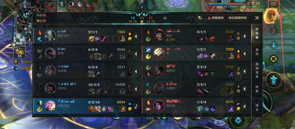 3、对局中要时常点开右上角的【面板】,看看双方英雄战绩和经济,这样能更好制定战术呀。