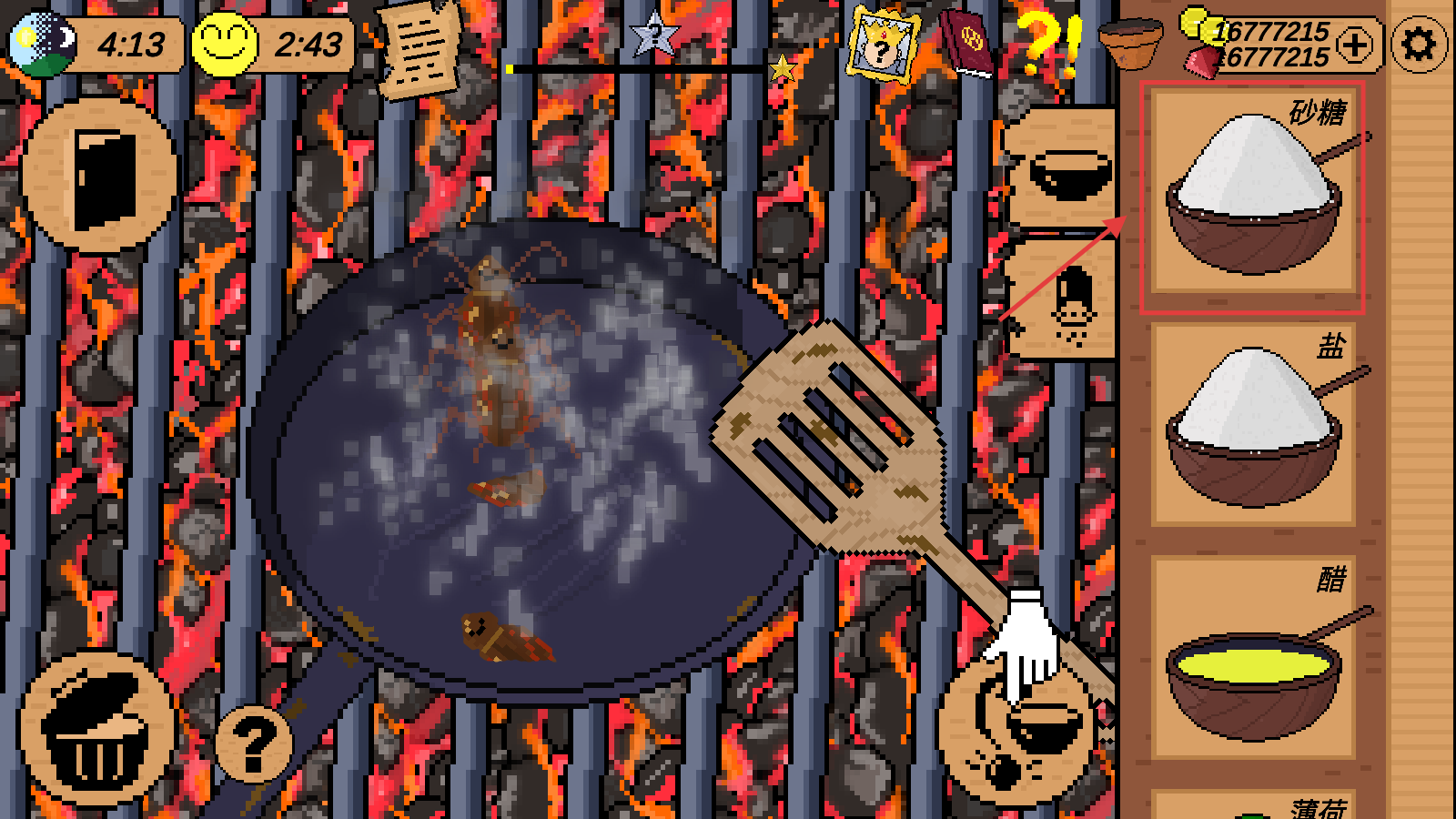 4、在烹饪界面添加砂糖等调料,用锅铲翻炒食材,完成料理制作以获取收益。
