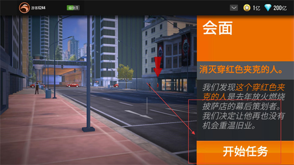 1、在任务界面查看目标为【红色夹克】的角色,了解任务背景后,点击【开始任务】进入狙击场景,准备定位目标。