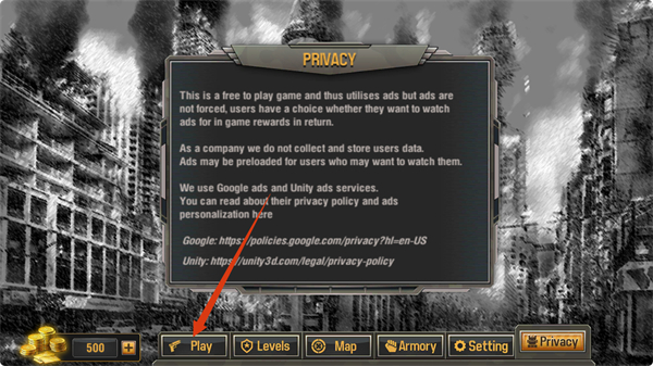 1、在游戏主界面,点击【Play】按钮,进入游戏开始坦克对战挑战。