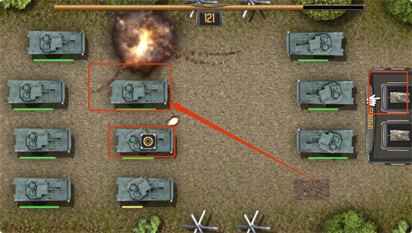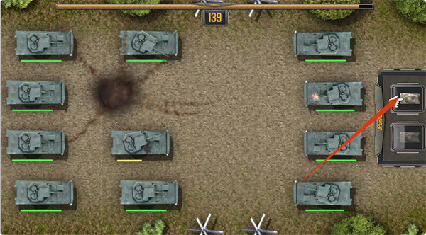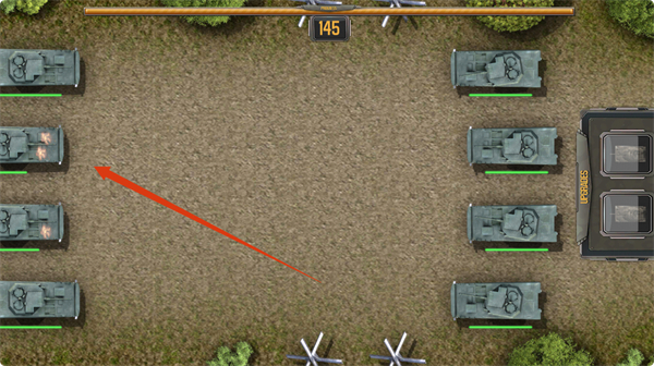 2、游戏中,左侧坦克会自动发射攻击,需留意敌方坦克动向,做好防御准备。