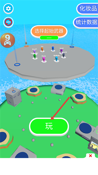 1、点击绿色【玩】按钮,进入游戏开始对战。