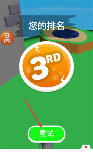 4、对战结束后,若对排名不满意,点击绿色【重试】按钮,重新开始一局游戏。