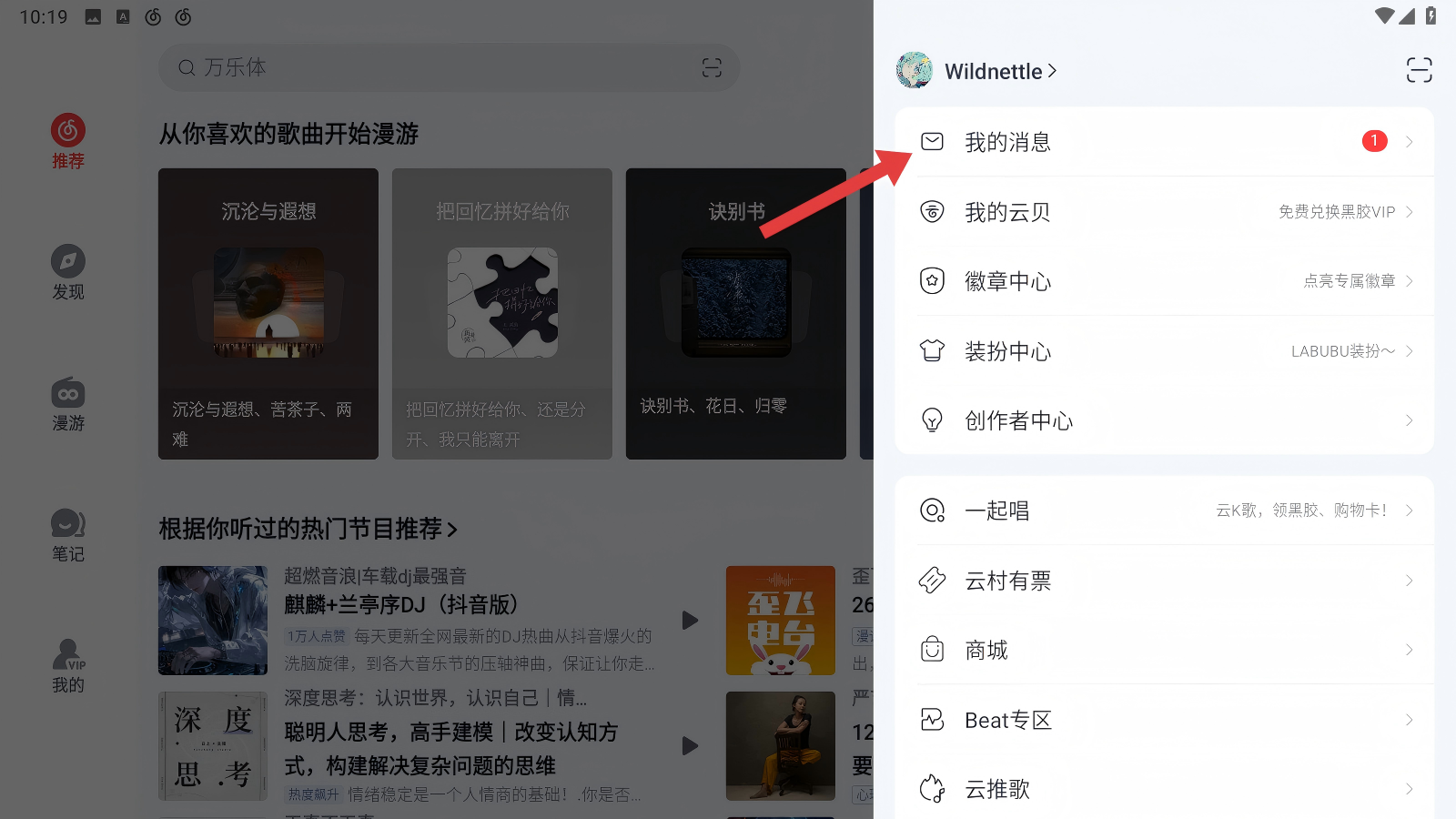 2、接着在展开的菜单里,找到并点击【我的消息】选项,就能进入消息管理页面,为后续清空提醒做准备咯。