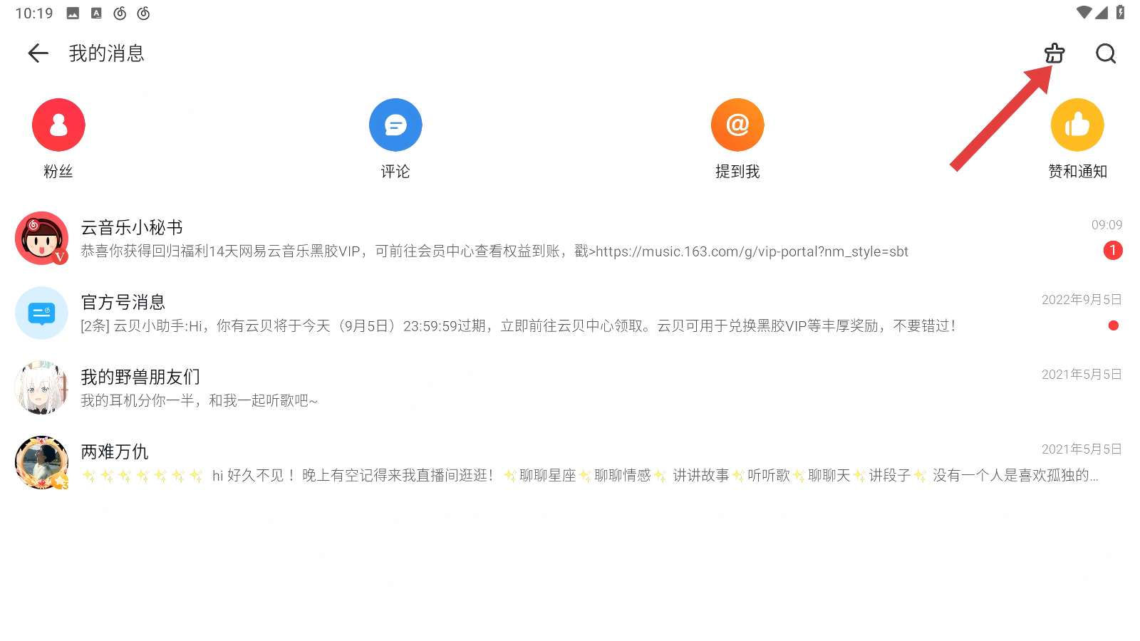 3、进入【我的消息】页面后,留意右上角的【刷子】图标,点击它就会弹出清空提醒的确认框啦。